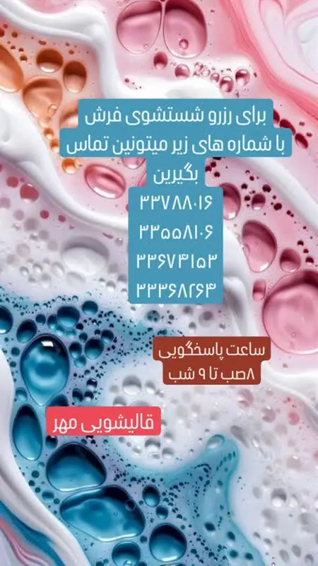 با انتخاب قالیشویی مهر قزوین، شما از خدماتی با استانداردهای روز دنیا، توسط کارشناسان مجرب و با تضمین کیفیت بهره‌مند خواهید شد. شستشوی فرش دیگر نگرانی نیست؛ با فناوری مکانیزه و تیم حرفه‌ای، فرش‌های شما همچون روز اول درخشش خواهند داشت.